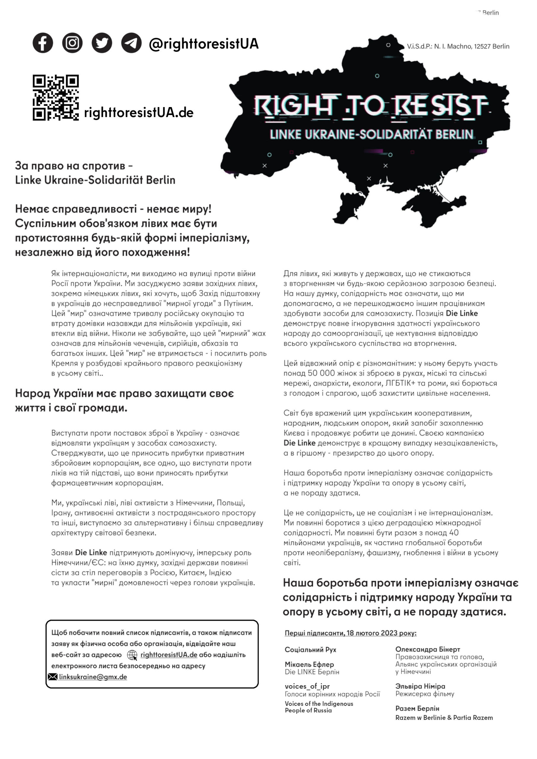 For the Right to Resist – Linke Ukraine-Solidarität Berlin